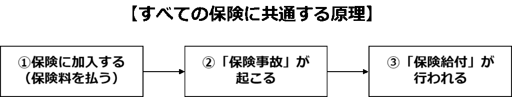 国が運営する公的保険にしろ、民間企業が運営する私的保険にしろ、「保険」と名がつくものに共通する非常に重要な原理があります。それは「保険加入者」(保険に加入し保険料を払っている者)に、「保険事故」が生じたときに、「保険給付」が行われる、という原理です。