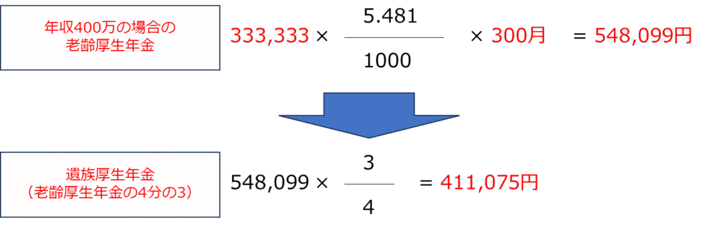 約410,000円/年(死亡者の老齢厚生年金の報酬比例部分の4分の3)